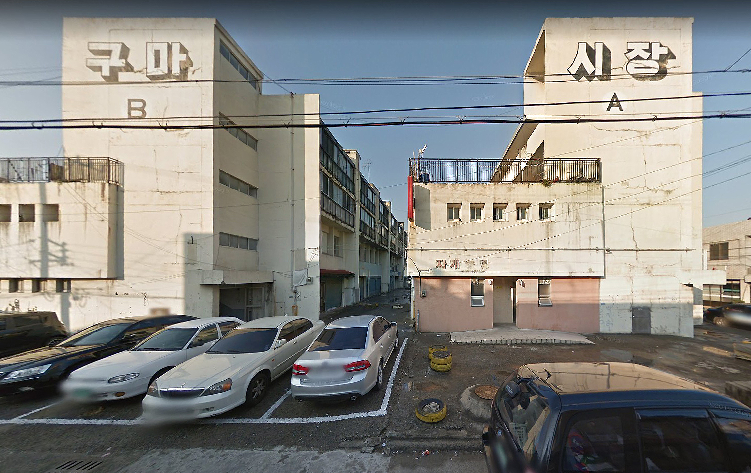 2개 동이 동서 방향으로 일자형 배치로 되어 있는 지하1층, 지상4층 짜리 시장 아파트.